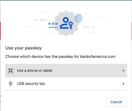 On the BOA website, I don't have a login option with a passkey. I have to sign in with my username and password before I am prompted for the passkey. Is that the same for you?