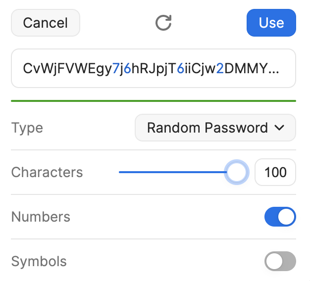 Does anyone know how to get to the screenshot that ag_ana showed me in the previous post? I have the option to create a random password of only 50 characters and not 100 as she shows in her post. Anybody know hot get to 100 characters in 1Password 8?