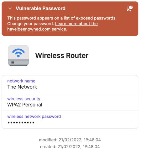 Currently in 1password 8 beta, "Wireless routers" items do not display the strength of the "wireless network password".
