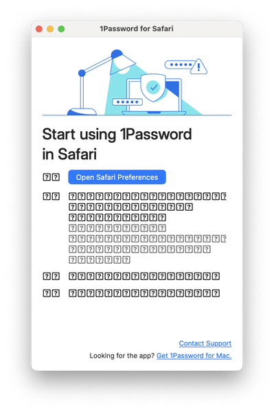 Hello. I've just installed https://apps.apple.com/us/app/1password-for-safari/id1569813296?mt=12 and upon opening the app for the first time, was presented with a window that looks like this: