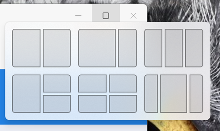 Hover your mouse over the Maximise button on the title bar of any (most) windows on a Windows 11 system and you will be able to choose from a number of layouts to organise your windows.