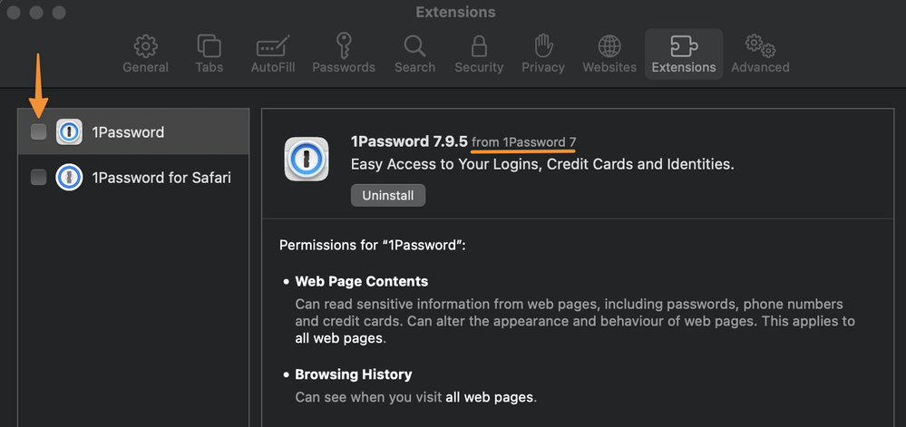 I hope we can win you over one day, @411Password! In the meantime I'd still like to get 1Password 7's Safari extension working for you. Can you tell me if it's enabled? You can check this under the Extensions section of the Safari Preferences: