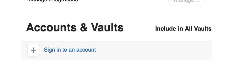 Also, in Settings > Accounts and Vaults, there are no vaults listed. When I click on the plus "+" sign, it brings me to another sign-in page that requests my "secret key."