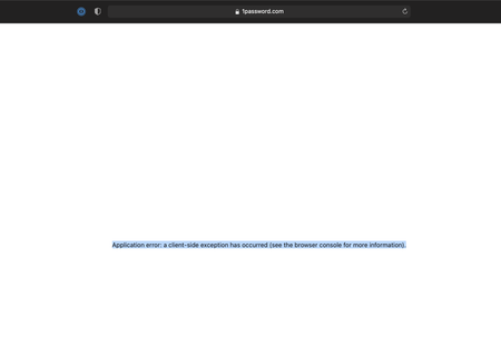 But when I enter 1password.com I get a redirect with the following text: Application error: a client-side exception has occurred (see the browser console for more informatio...