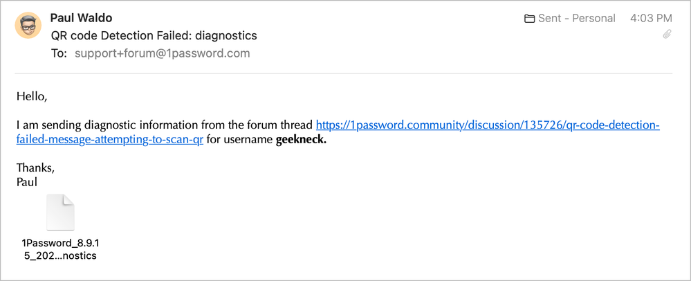 - A link to this thread: https://1password.community/discussion/135726/qr-code-detection-failed-message-attempting-to-scan-qr