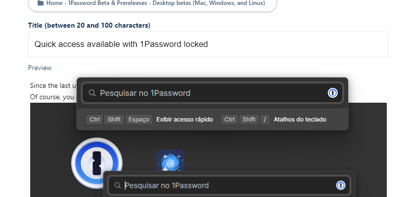 Since the last update, 1Password has been opening the quick access even with the vault locked.