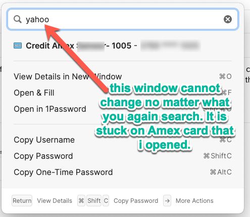 See this thread here: https://1password.community/discussion/122717/quick-access-gets-stuck-sometimes