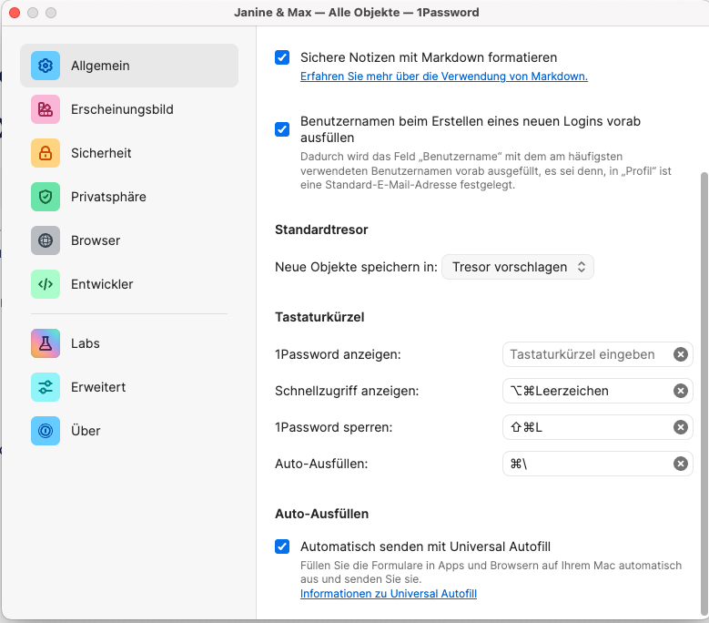 In the 1password settings it shows the desired shortcut (see "Schnellzugriff anzeigen"):