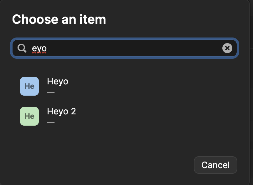 in the Relate Items popup window, the search input doesn't support partial matching as the top search bar does, which makes searching miserable. Seems it only supports "startWith", with "contains" functionality missing.