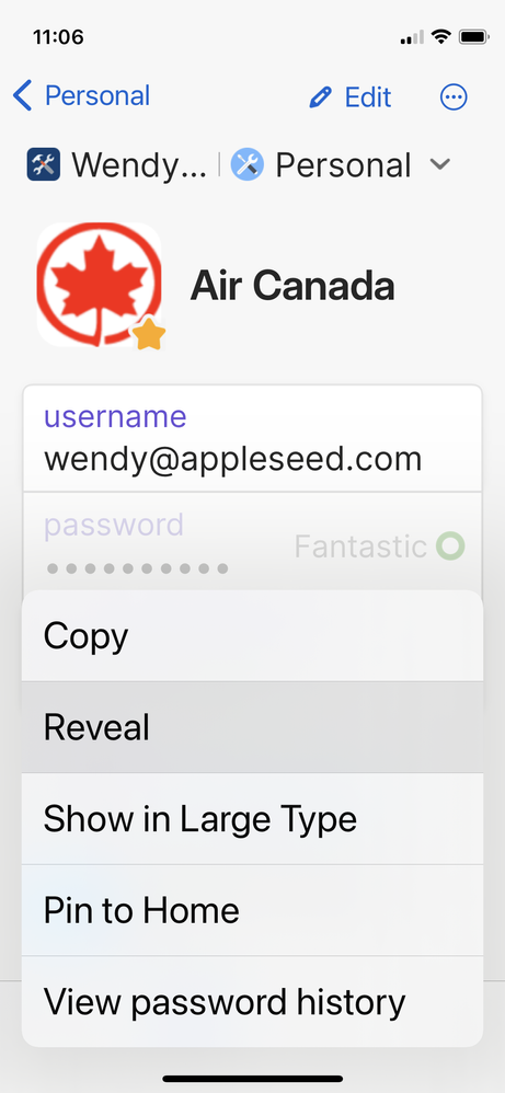 I wasn't able to reproduce the problem in 1Password 8.9.7, using a smaller iPhone (iPhone 12 mini) running iOS 16.2, which is the current version of iOS available for iPhone 8 and later. In this screenshot, you'll see the Reveal option highlighted because I had my finger on it when I took the screenshot: