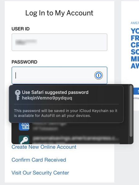 Safari Suggested Password Covering 1P Dialog