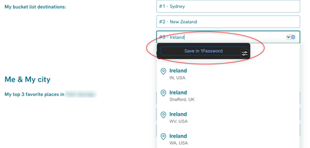 If you're seeing a prompt from 1Password in a field where you'd prefer not to, you can click the 1Password icon within the field itself to minimize the prompt. Alternatively, if you'd like to disable prompts from 1Password on that page entirely, you can right click the page and select 1Password - Password Manager > Hide on this page.