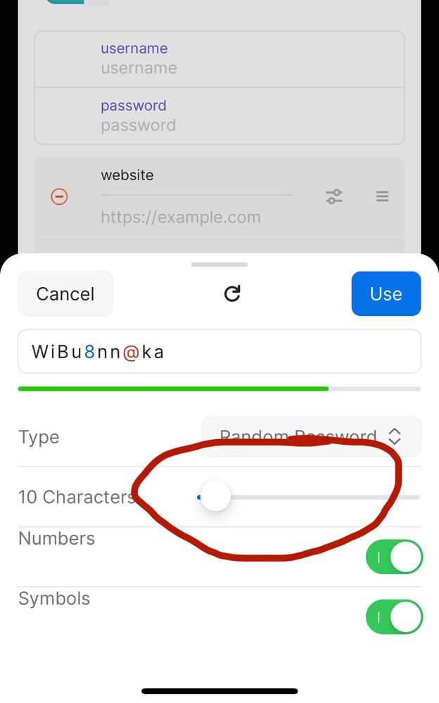 It is very difficult to choose exactly the length of the password in the generator on 1Phone. It is necessary to move the slider, the value is constantly jumping. If you have not clearly described the problem, then do the following: create a new entry, click generate in the password field, try to set the password length to 12 characters. I am sure that you will not succeed right away 😀