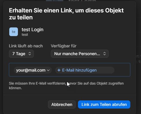 I would like to share a password with someone via email address. if I do this as shown in the photo above, the recipient of the e-mail will not receive an e-mail from me!