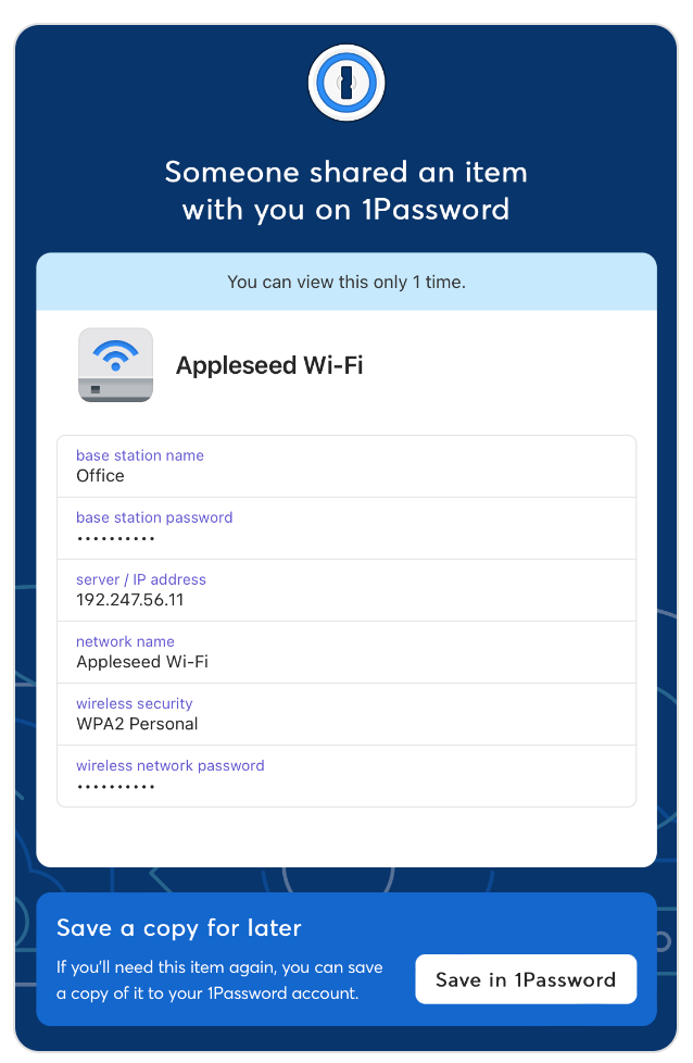 Is there any way to Copy or Share the credentials with her and automatically have 1Password create a new item Login item in the app?