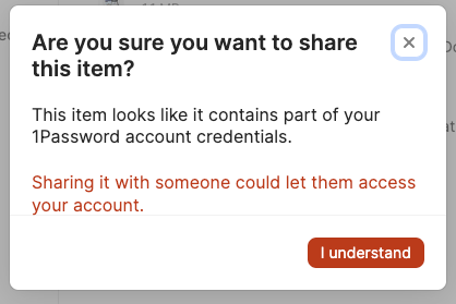I have been a 1Password user for years now. I frequently have to share items with external users and I am very familiar (and happy) with the sharing feature. Today, when I tried to share a Secure ...