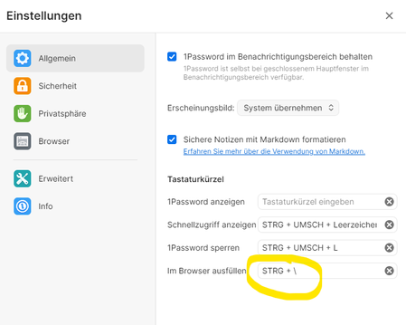 Shortcut to fill password in browser not working on German QWERTZ keyboard layout