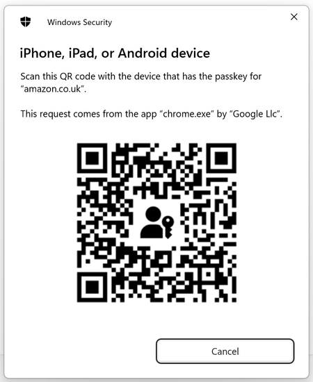 Sign in to Amazon using passkey and QR code
