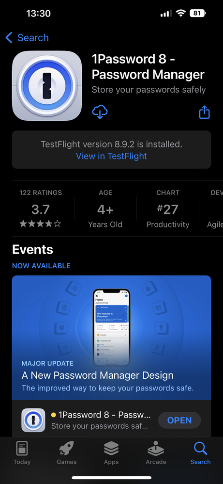1Password beta for Windows is currently at 8.9.4 but 1Password beta for iOS is still at 8.9.2.