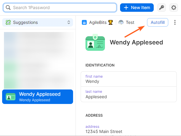 As a workaround in the meantime, opening the 1Password pop-up, and selecting Autofill on your Identity item should work: