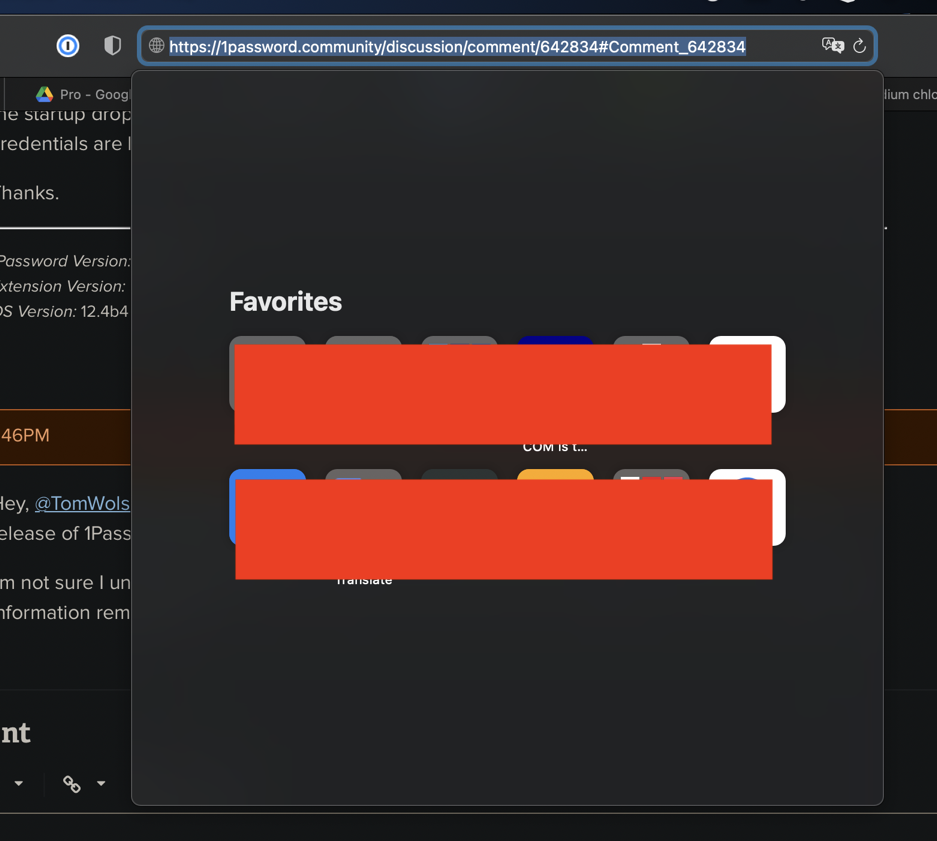 Slightly annoying nuisance that's been there for a while. When I use the extension and click Autofill, the startup drop down sheet opens from the URL address bar. Doesn't really affect anything, the credentials are loaded, the sheet just covers much of the screen, and obviously serves no purpose.