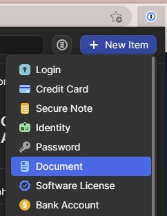 You should be able to add a document as a new entry into your vault. This should work in the browser extension.