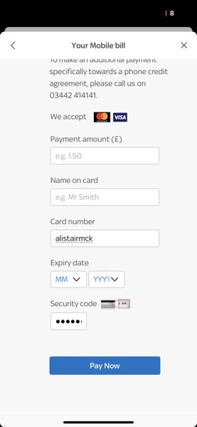 hi, when I'm submitting a payment to sky, via Mac everything is in correct field, when I try to submit a payment via My Sky app, when I try to autofill payment info, it all other the place, my l...