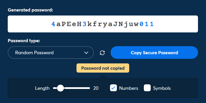 This is why I think an actual button, within the interface, would be very helpful. It would hopefully provide the kind of functionality shown below, via a dropdown menu (taken from the 1Password Generator website).