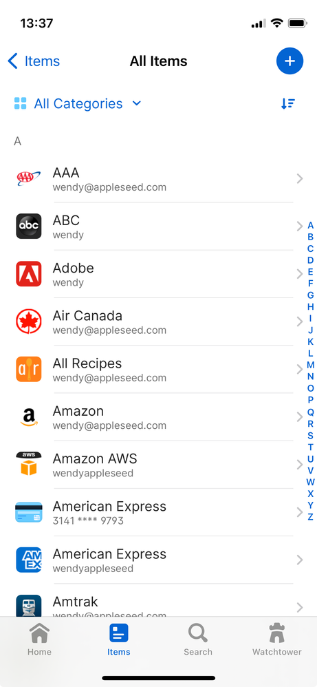 I would like to see an index of starting characters along side the list of logins similar to what Apple does in Contacts in IOS. This way one can quickly advance to the general area of a particular l...