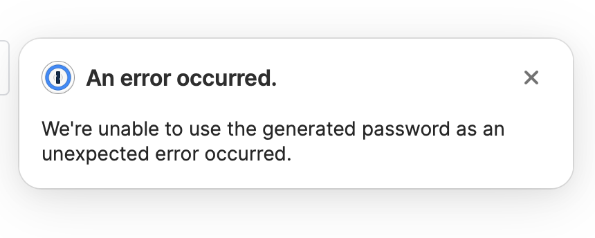 Thanks for your attention, steph_giles . I think it's happened to me several times (perhaps 3-6?) in the past six months or so. I wanted to report it in case it helps the 1P team and other users. Unfortunately, I cannot dedicate time to reproducing or troubleshooting the error. If I happen to catch it in the future, I'll post an update here.