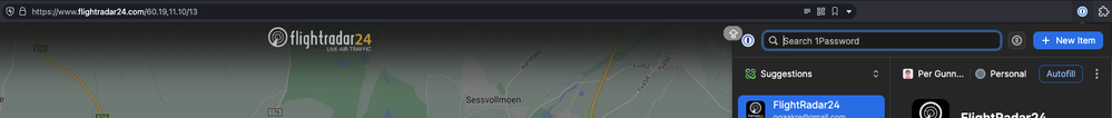 This is on my MAC, Im visiting flightradar24.com, if I click in the 1password extension - my suggestion is correct/able to find the site I should log on.