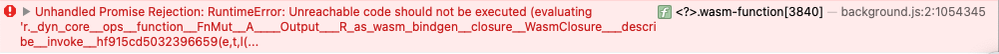 The dropdown on the input field with my logins is pretty hit or miss whether it will show up. It's honesty about 50/50 (It doesn't work on this site, for example). When it does, it responds to hover events, but clicking on a login won't auto-fill. Looking at the console for the extension, I do see a console error (this is the console specifically for the extension and not for the site I'm auto-filling):
