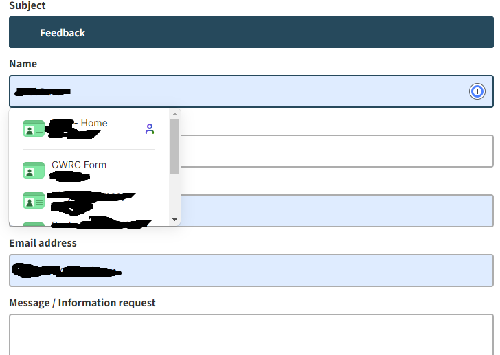 Am having no issues filling the other fields ok - yes, I get the icon and the identity suggestions.