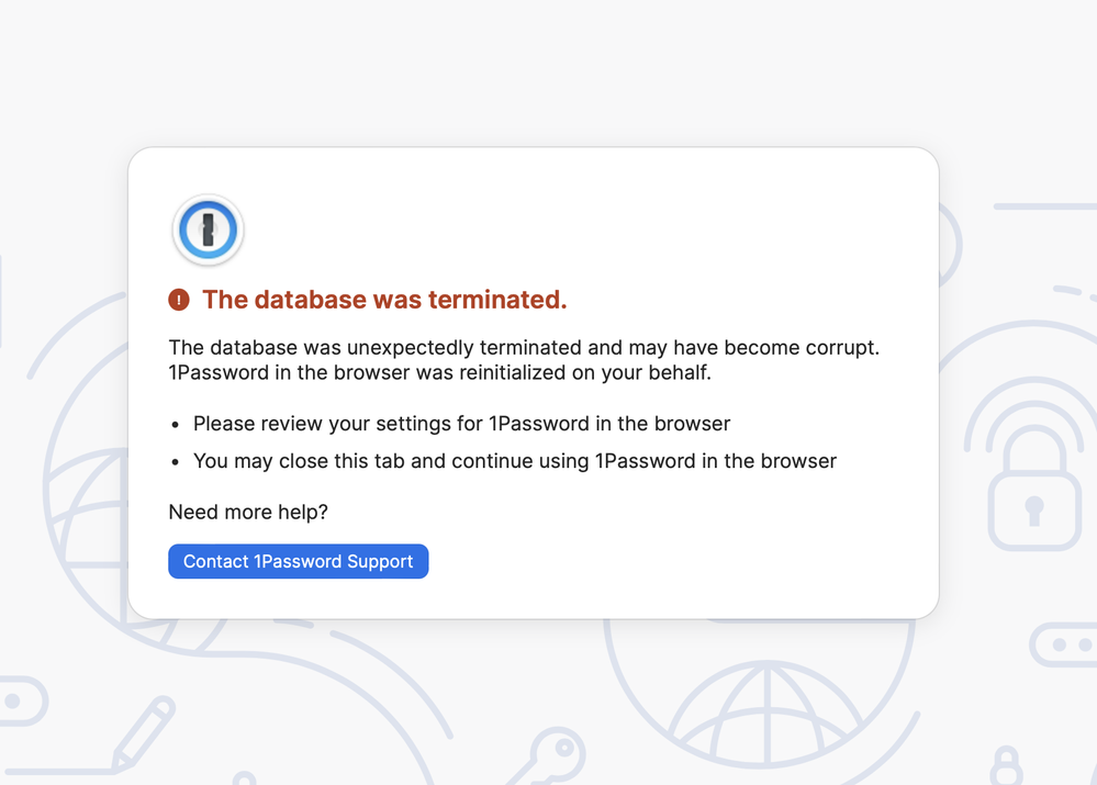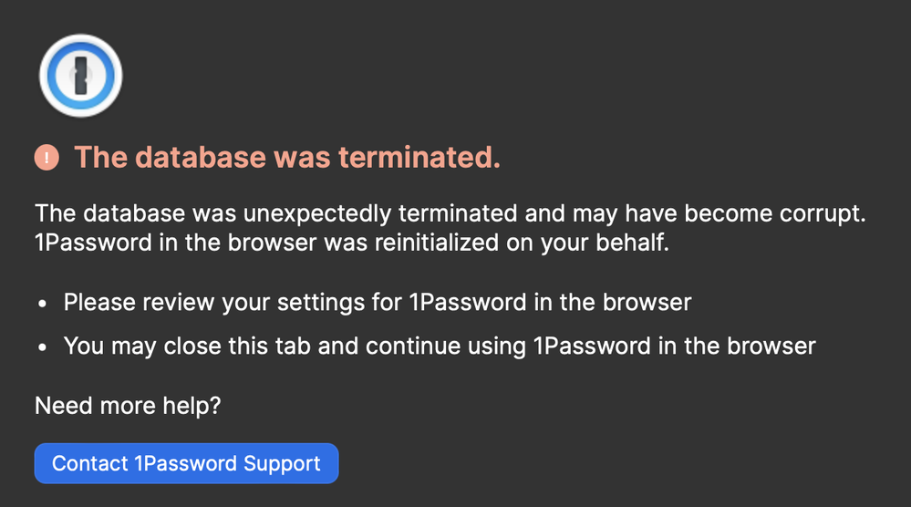 Every couple of weeks, I go into my Safari browser and clear all history (Settings > Clear History). When I tried to do so today, I got the attached error. I read the error description on the 1Password help page and kind of understand it. But my question is more general. After using 1P for families for several years, and after periodically clearing my Safari history over this entire timeframe, why is this "database was terminated" message only now starting to appear? What has changed?