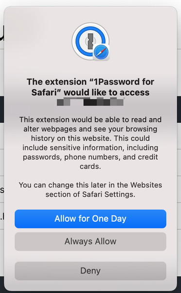 2 years agoThe extension "1Password for Safari" would like access ip_address