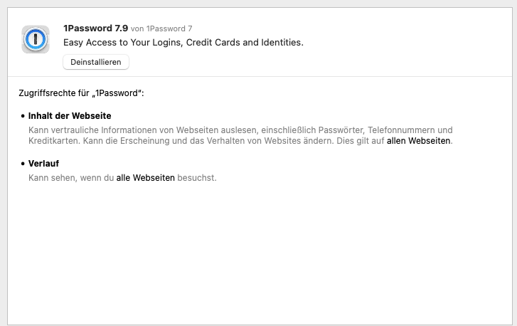 No reaction. Neither when I click on the 1Password icon in the menu bar, nor when I click on the extensions icon.