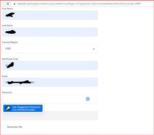 BUT now, 1P is suggesting 2 different passwords for the Password and confirm password box. so they dont match, and hence user cannot create their marriot account