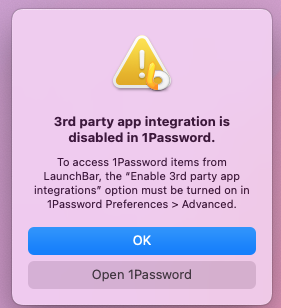 Third party integration problem in 1Password v 8 (Mac)