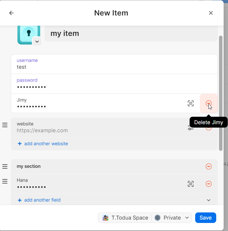 - even if you have added 2 totp codes: one under main user&pw graph and one under "my section", if you delete the first totp-item (which is under main user&pw graph) than that second totp code jumps out from "my section" and moves automatically under main user&pw graph. example: you want to delete "Jimy" and then the "Hana" jumps from its section and is placed in place of "Jimy" !!!