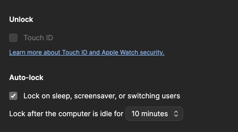 After setting up TouchID, I rebooted a few times and after each reboot, the option to enable TouchID in 1P remains disabled.