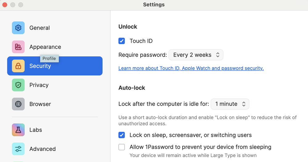 I just installed 1Password on a new Mac, and I'm finding that I have to type my password to unlock the Safari extension multiple times per day (it doesn't even offer TouchID), and TouchID is not working to unlock the main 1Password app.