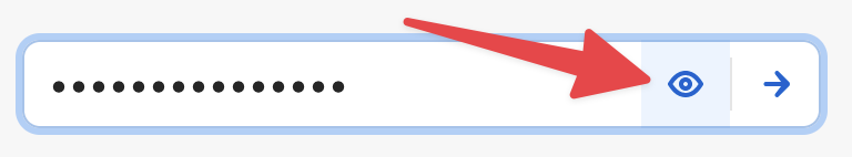 How can I view the 1Password login text? The most common way I've seen is an eye logo which allows the user to toggle back and forth between a mask and the text being entered.