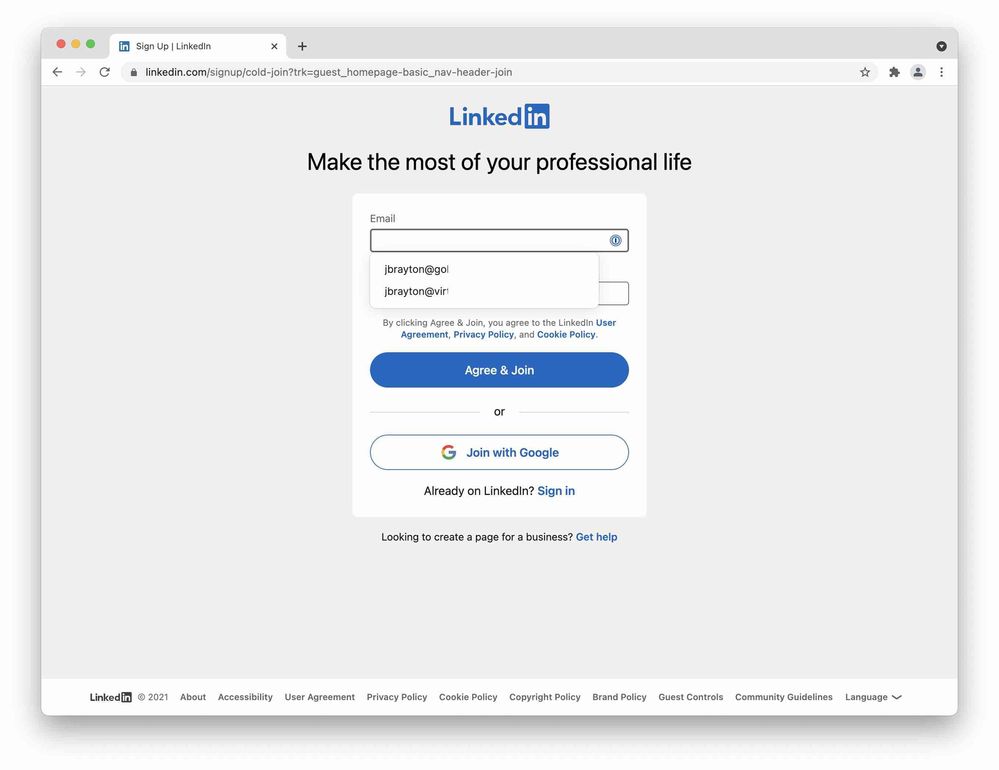 At this point, the option for "Create masked email" should be visible on the LinkedIn sign up page you've provided.
