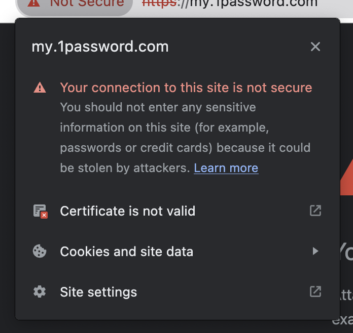 I'm unable to access the https://my.1password.com website. I keep getting a "Your connection is not private" page.