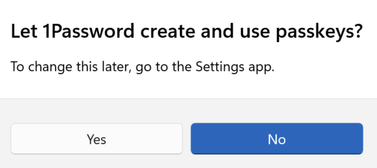 Further investigation revealed an issue where security keys may not work with the 1Password for Windows desktop app if you accidentally dismissed, or chose "No" on a prompt that shows up the first time that you try to use a security key with 1Password for Windows: