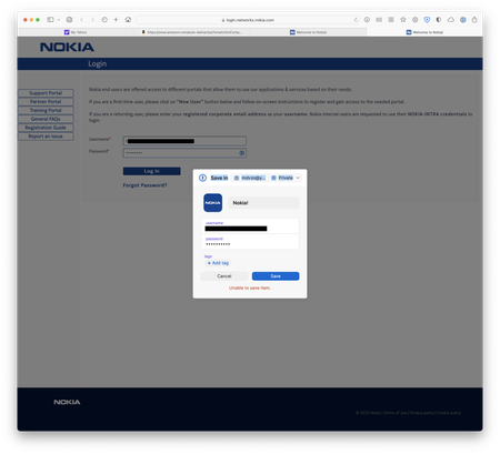 Unable to Autofill or Update 1Password for Nokia Site