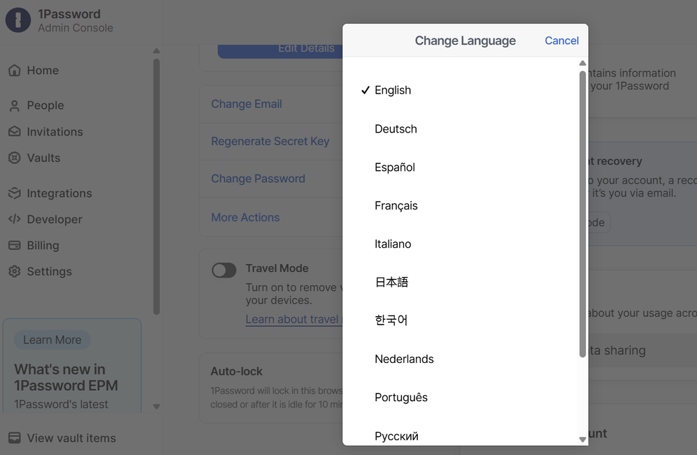 I don't see any option in my Admin console to change my country/language settings which may change the CALENDAR DATES in 1Password to European format (DD/MM/YYYY), am I missing something? Thanks.
