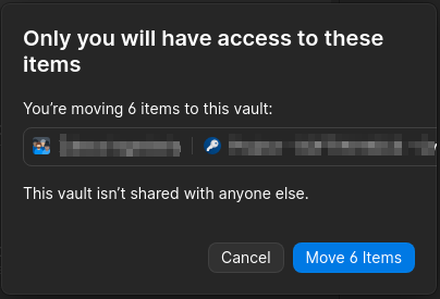 I'm trying to move some passwords from Vault A under Account A to Vault B under Account B. I'm able to drag-and-drop selected entries, but after I click "Move" button on the pop-up window, the pop-u...