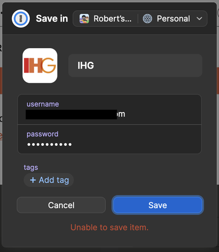 Won't save new login. I don't frequently need to save new logins, so unclear how often/long this is an issue--but definitely not the smooth flow I expect.