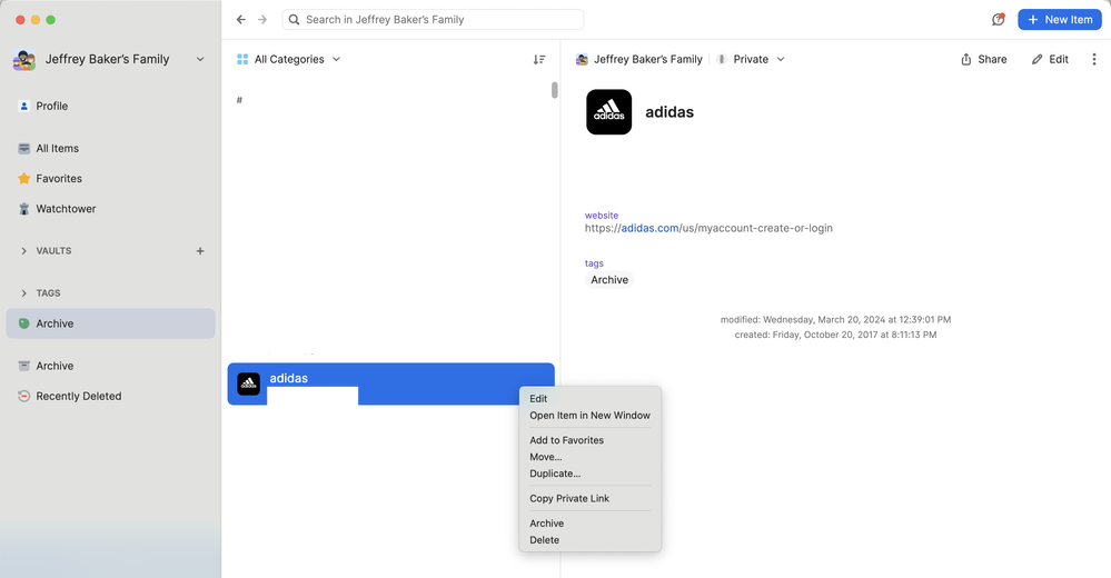 - Your Shared vault has an Archive.